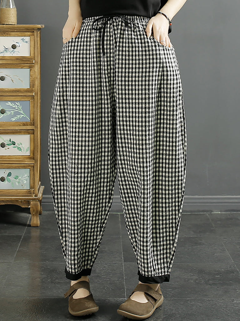Women Vintage Plaid Summer Cotton Harem Pants QW1044