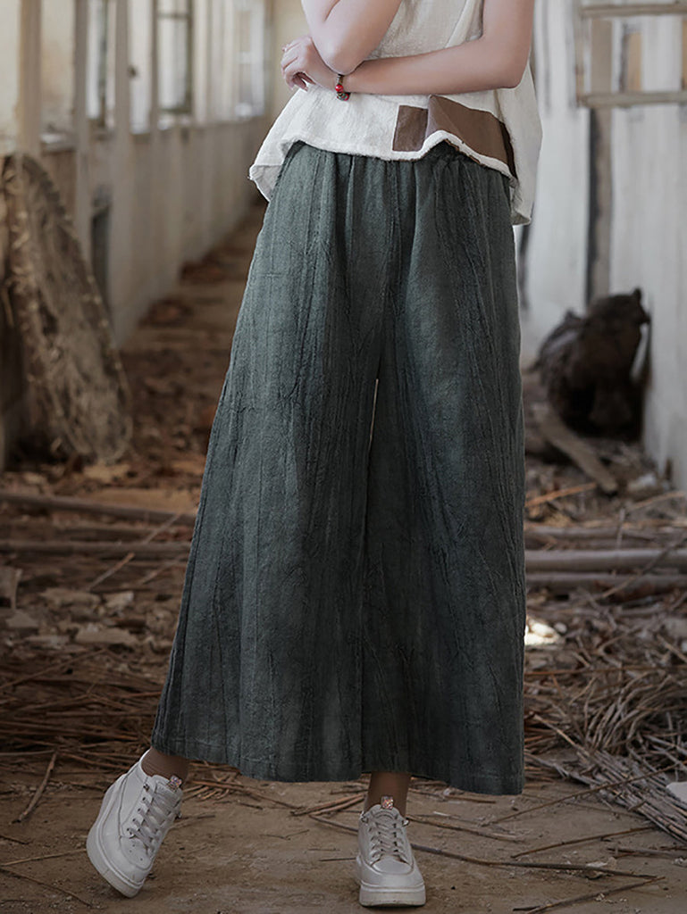 Women Vintage Summer Tie-dye Ramie Wide-leg Pants IO1009