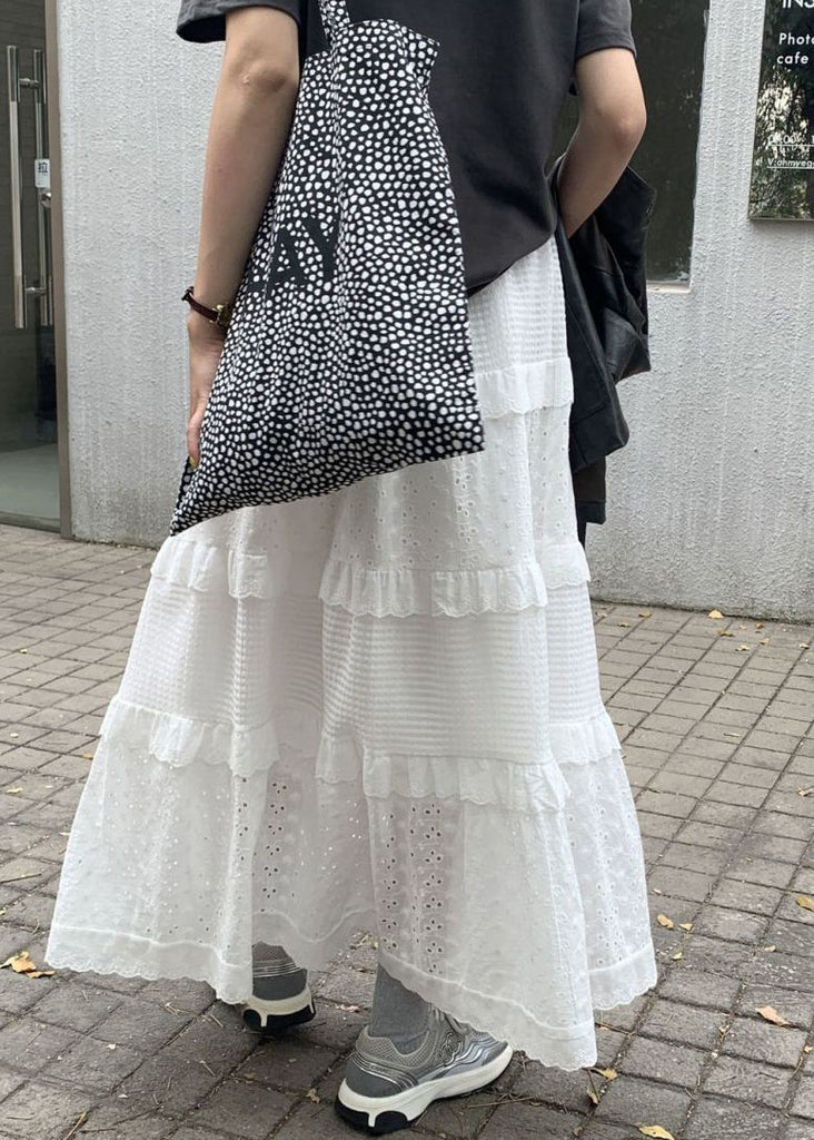 Women White Ruffled Hollow Out Cotton Skirts Summer
