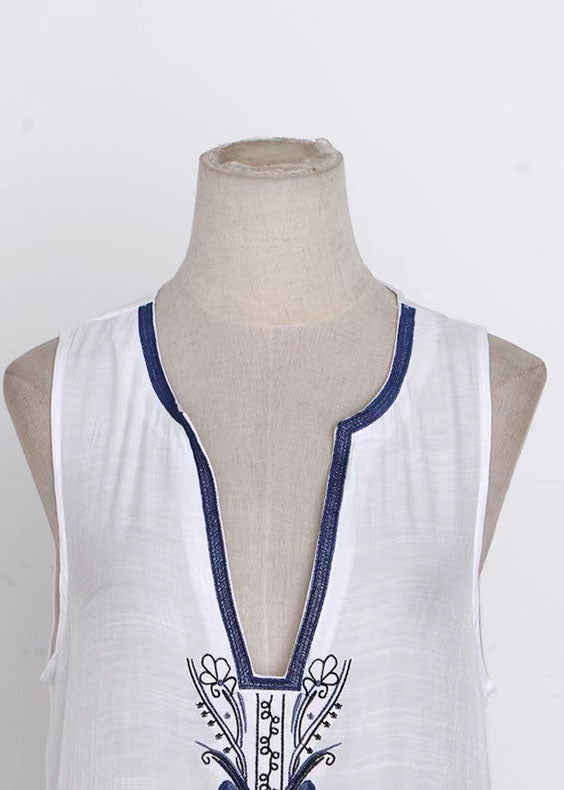 Women White V Neck Print Chiffon Vacation Dresses Summer