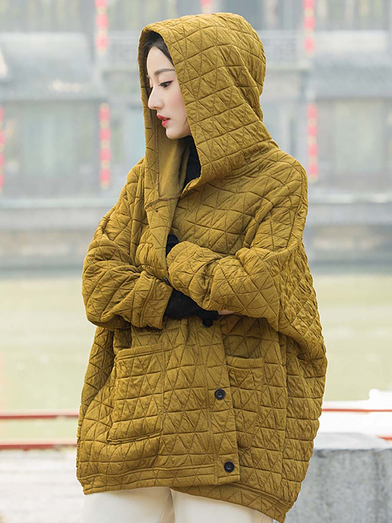 Plus Size Women Winter Casual Button Pocket Hooded Coat CX062