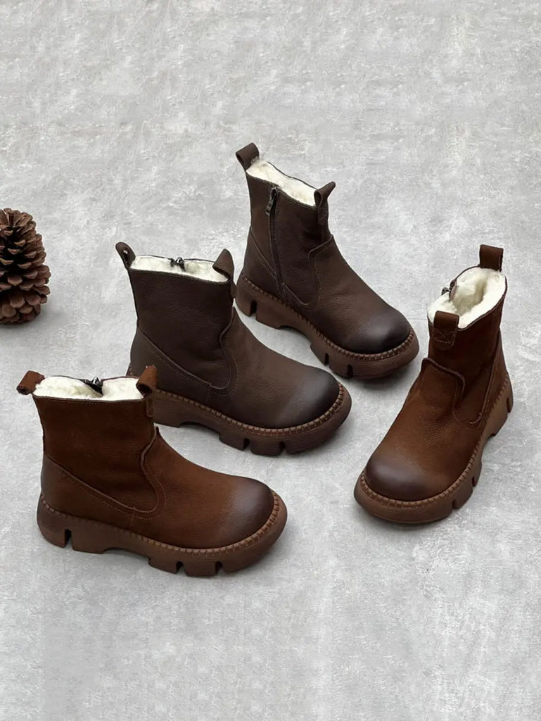 Women Leather Fleece-lined Ankle Boots