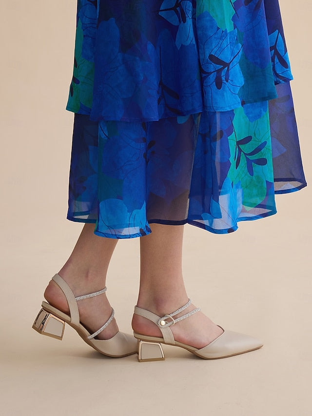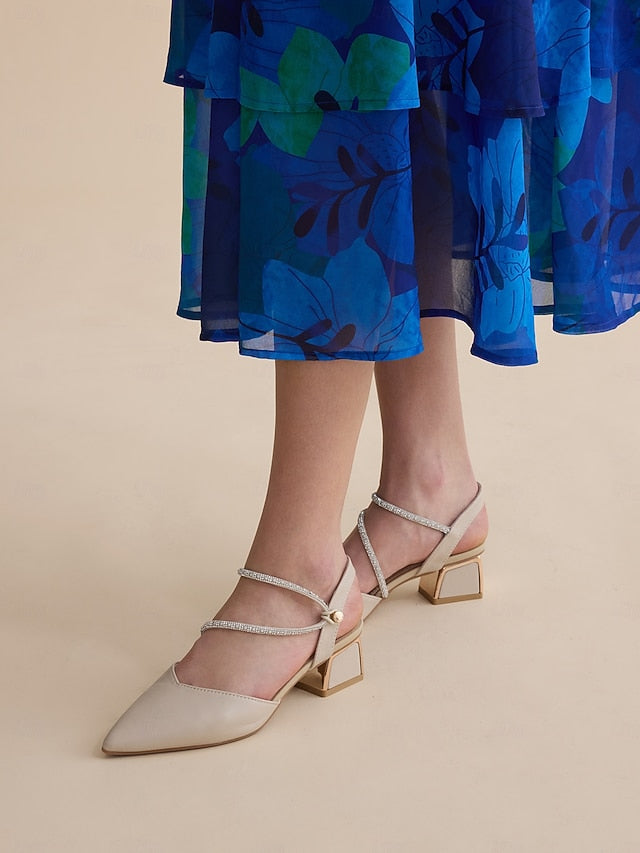Women's Toe Pointed Heels Elegant with Rhinestone Slingback