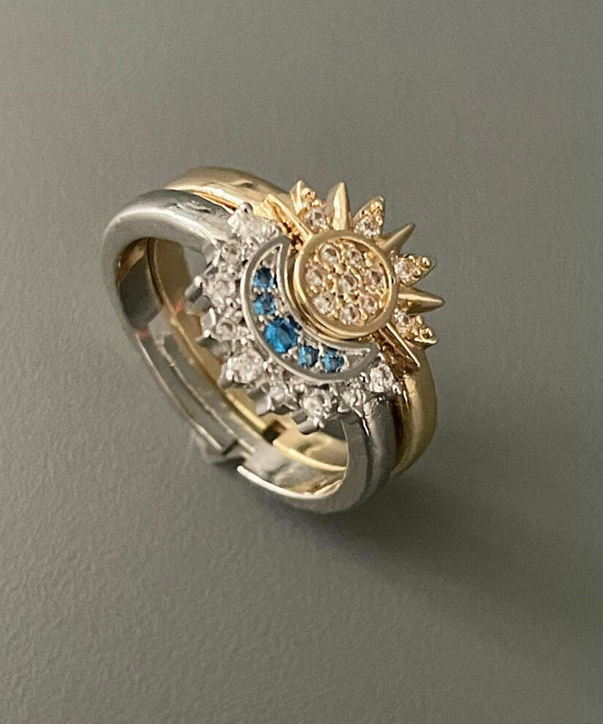 Zircon And Rings Alloy Open Fashion Set Two-Piece Moon Sun