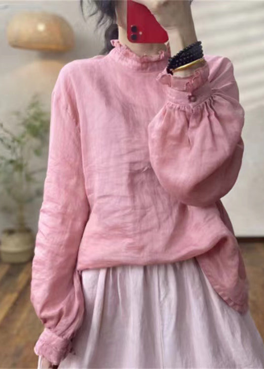 The Chic Red Ruffled Linen Blouses Lantern Sleeve is the yin, to your yang. You've found what you're looking for.