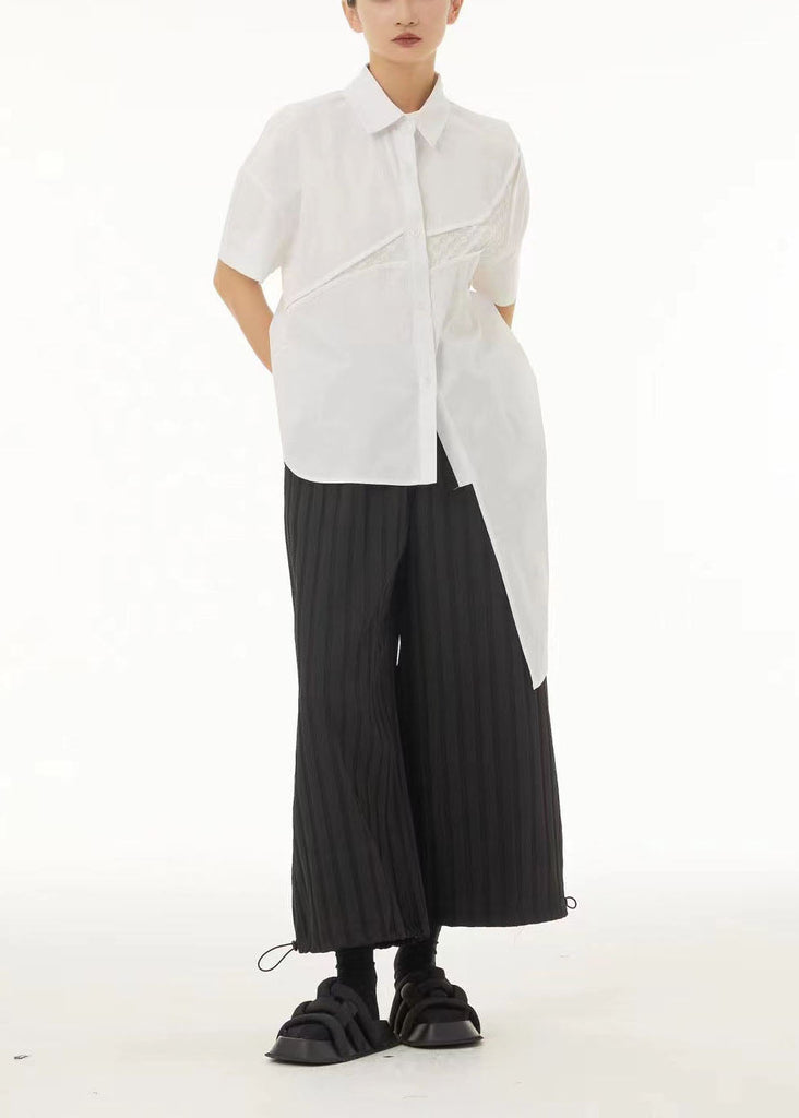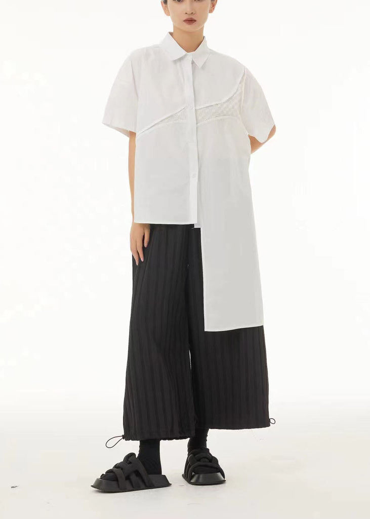 White Cotton Blouse Top Asymmetrical Side Open Summer LC0152
