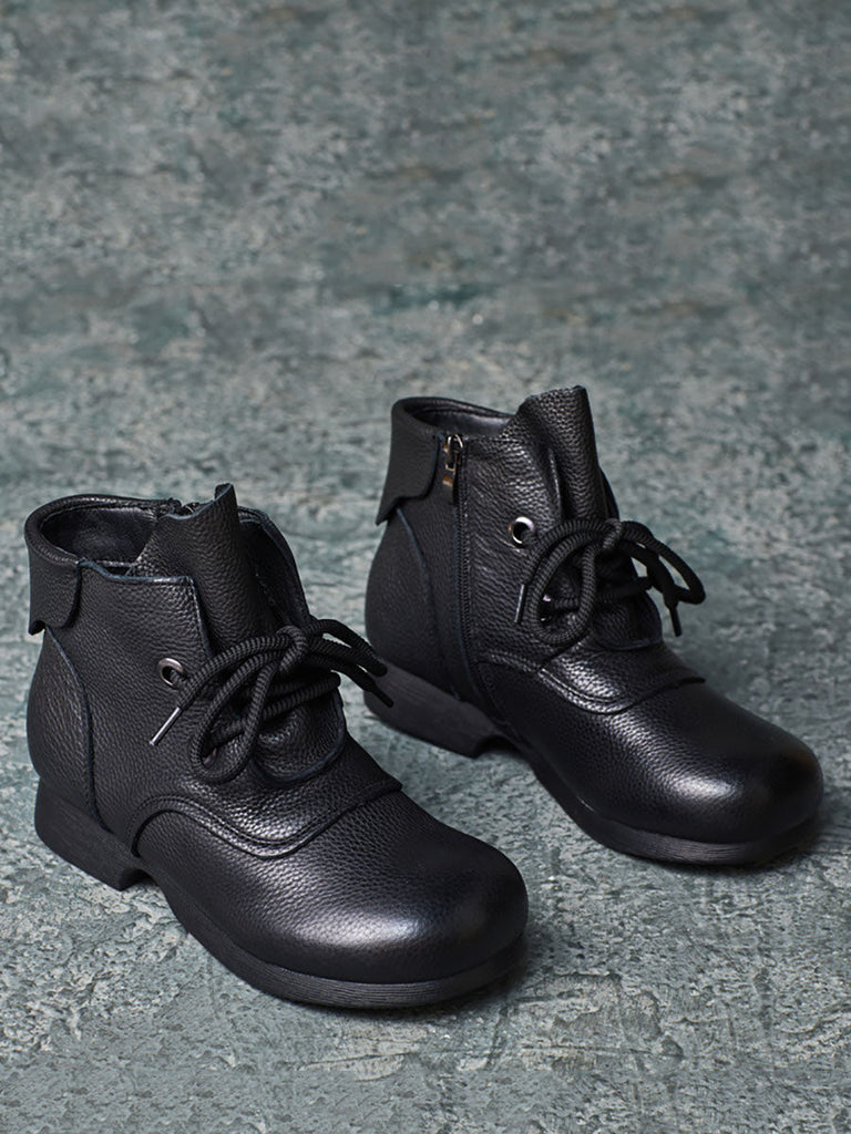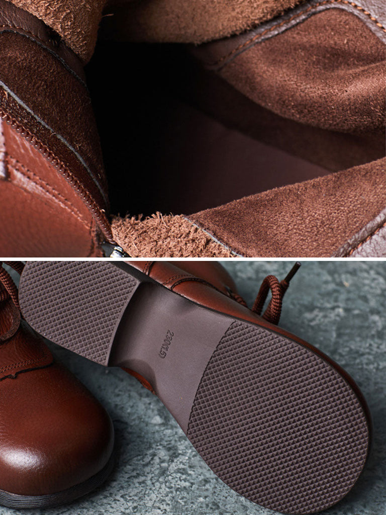 Women Casual Winter Soft Leather Spliced Mid Heel Boots AV1032