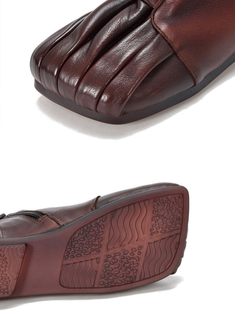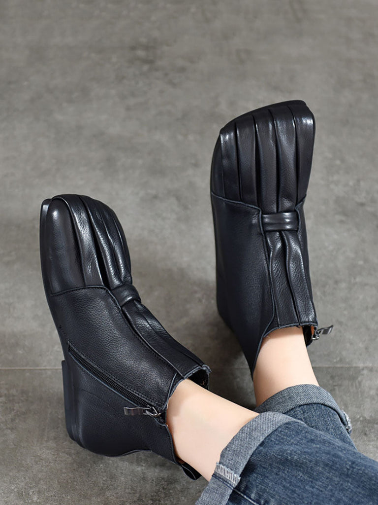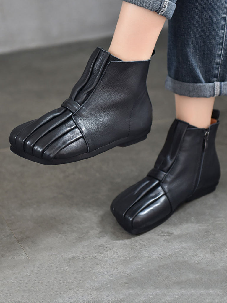 Women Soft Leather Shirred Square Toe Ankle Boots WG031