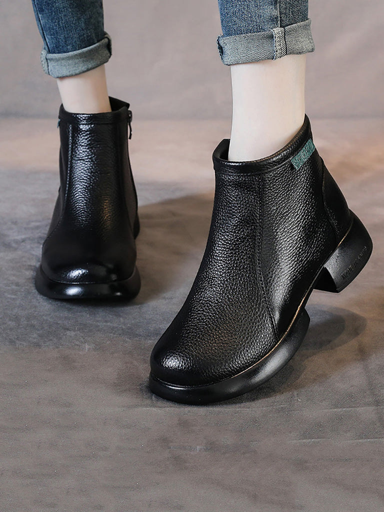 Women Vintage Commute Leather Zipper Mid-Heel Boots AH1065