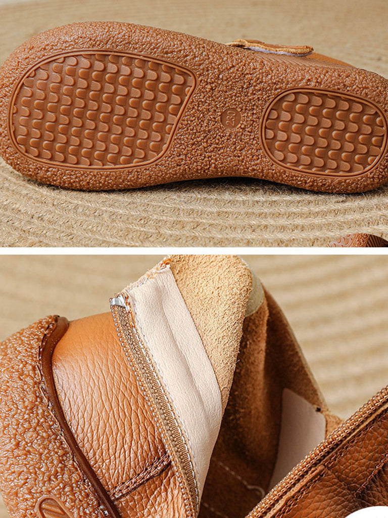 Women Winter Casual Leather Spliced Flat Boots AH1022