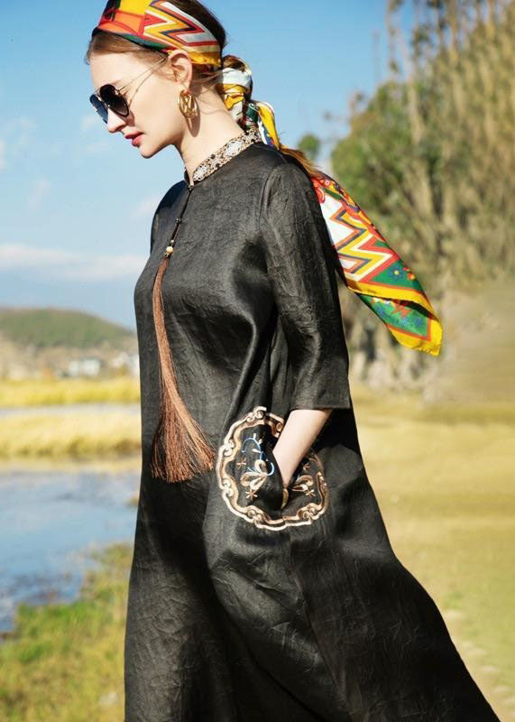Chinese Style Black Embroideried Tasseled Silk Dresses Bracelet Sleeve