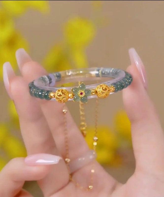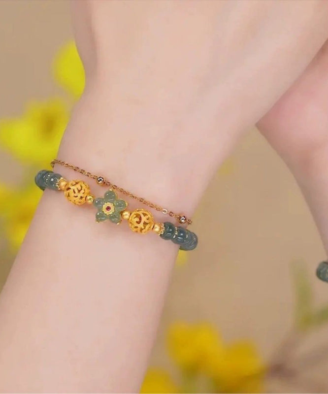 Classy Green Sterling Silver Overgild Jade Floral Tassel Charm Bracelet AB1061 Genistyle Shop
