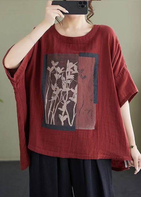 Plus Size White Print Low High Design Cotton Blouses Bracelet Sleeve