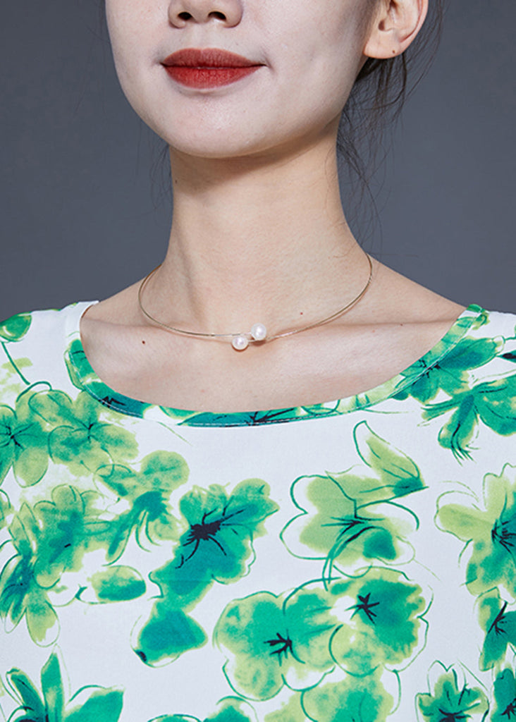Elegant Green O-Neck Oversized Print Silk Vacation Dresses Bracelet Sleeve