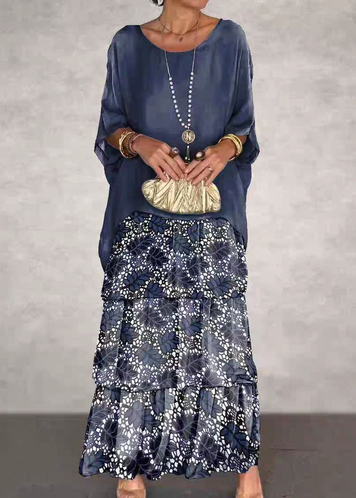 Green Print False Two Pieces Dresses O Neck Bracelet Sleeve QA021