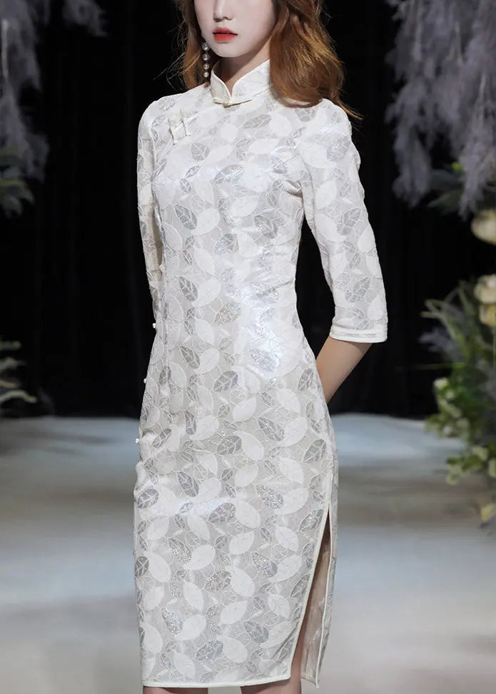 Button Side Open Lace Dress Bracelet Sleeve