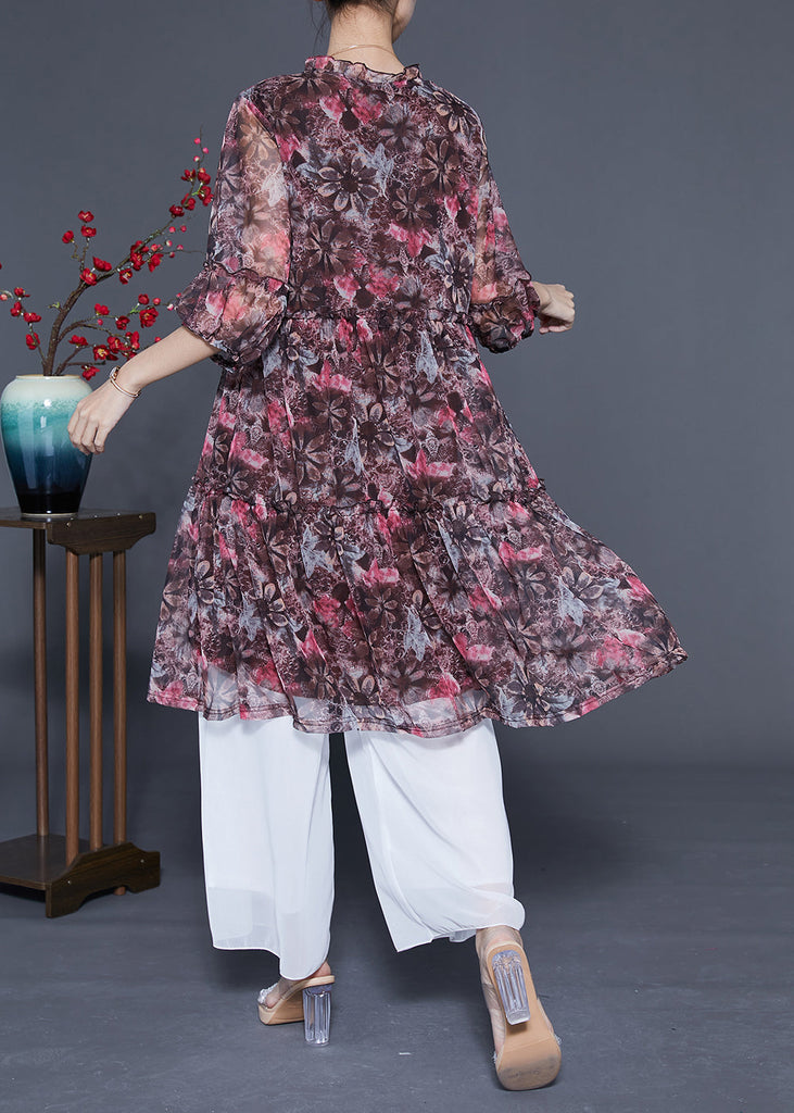 Modern Khaki Ruffled Print Chiffon Beach Dress Bracelet Sleeve