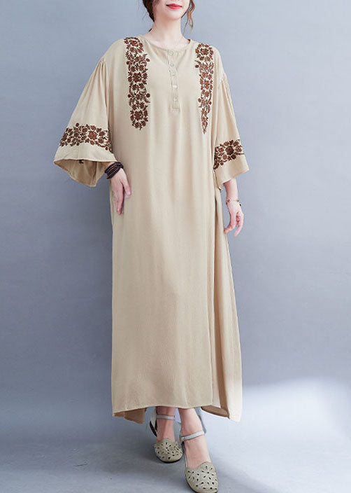 Natural Black Embroideried Cotton Holiday Dress Bracelet Sleeve LY1537