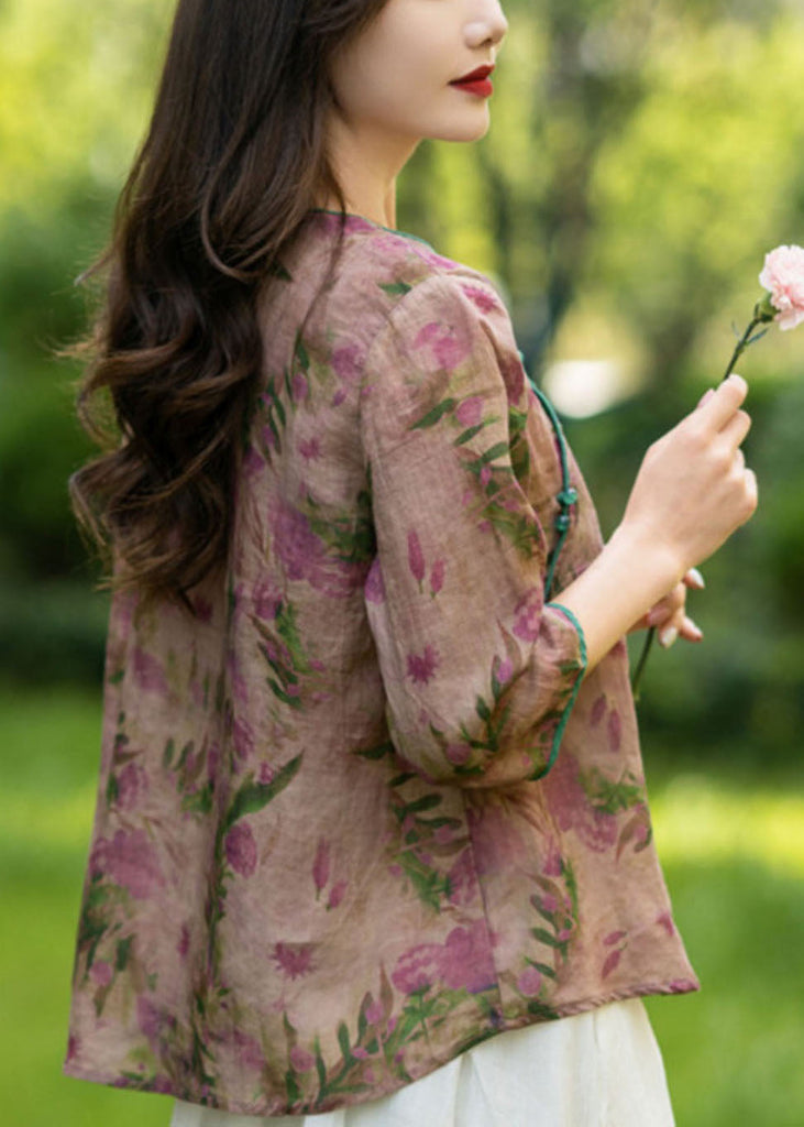 Vintage Pink Floral Linen Shirts Bracelet Sleeve AP058 GK-HTP240718