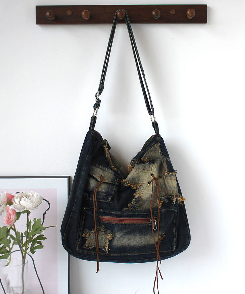 Fashion Tassel Large Capacity Denim Satchel Bag HandbagThis bag is made of fine denim fabric.