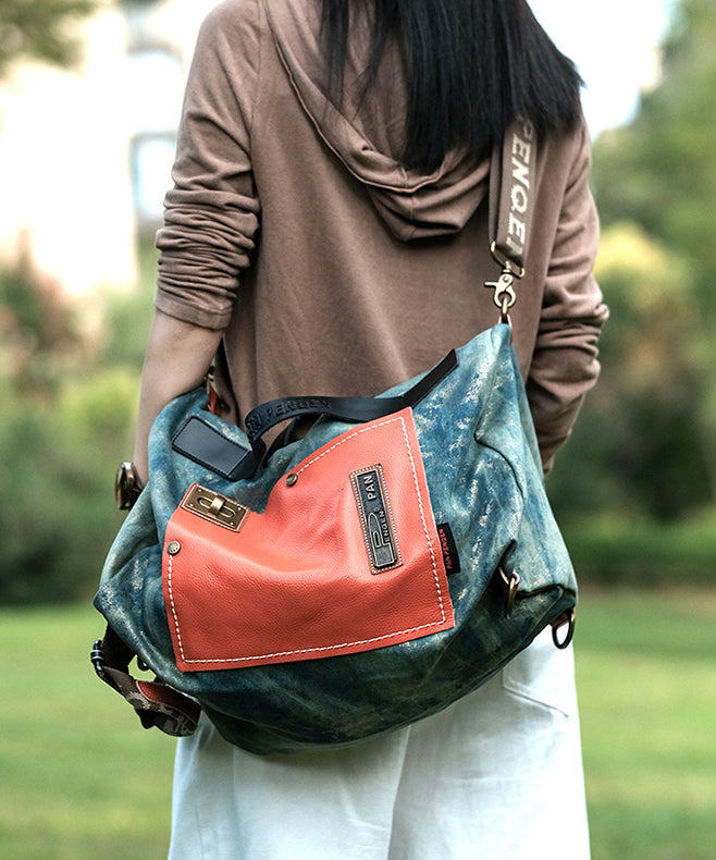 New Travel And Leisure Large Capacity Crossbody BagThis bag is made of fine denim fabric Calf Leather.