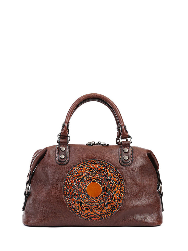 Women Leather Flower Spliced Capacity Hand Bag Shoulder Bag AX1007