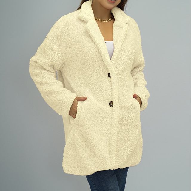 Product Title :Notch Lapel Plain Fleece Single-Breasted Jacket