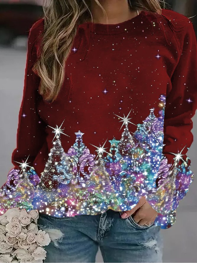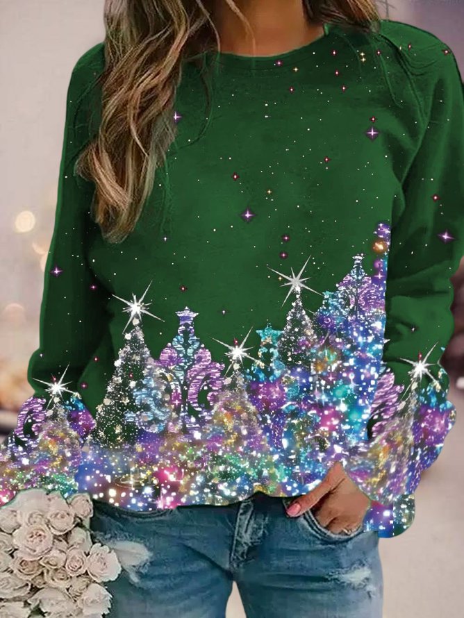 Women's Black Sweatshirt Colorful Christmas Tree Printed PJ18