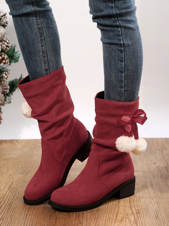 Christmas Pompom Decor Plus Size Faux Suede Slouchy Boots PJ50
