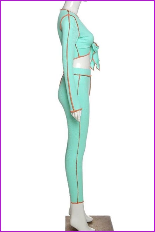 Imagine if you could be satisfied and content with your purchase. That can very much be your reality with the Striped Neon Lace Up Crop Top Sling Sporty Leggings V-neck Ribbed Matching Set F1110.