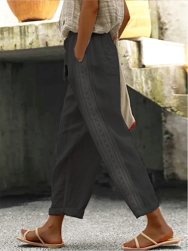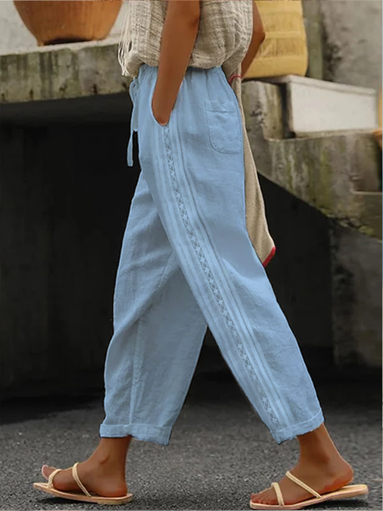 Women's Cotton Linen Lace Pocket Casual Pants MMy30
