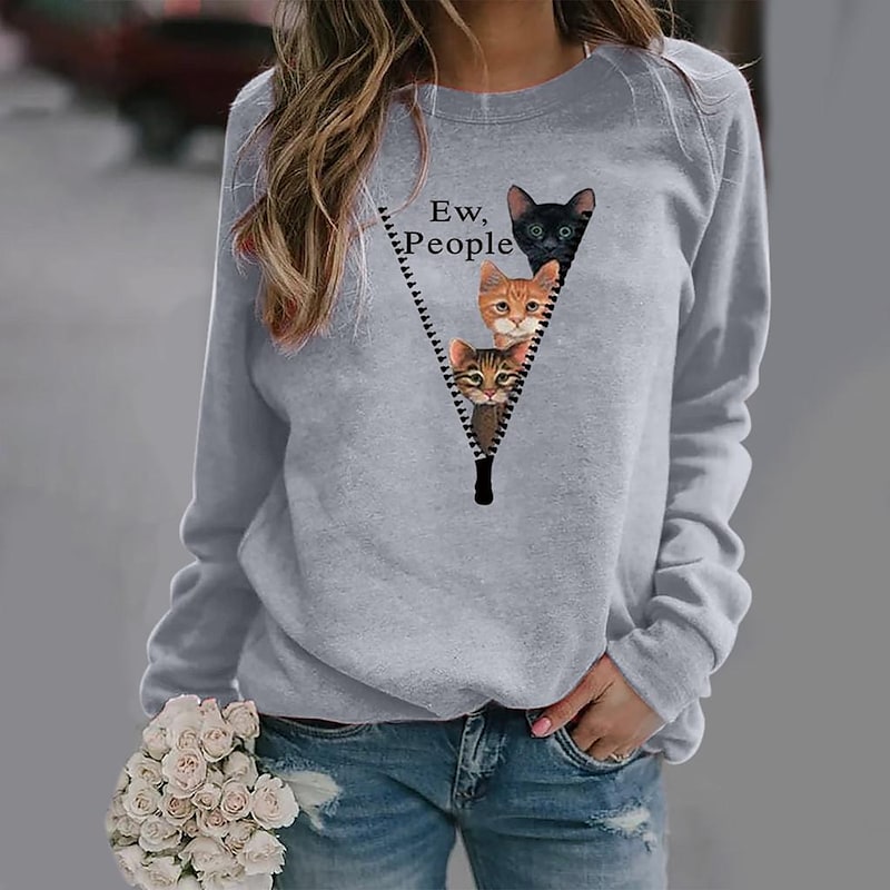 The Women's Sweatshirt Pullover Basic Green Blue Purple Cat Street Round Neck Long Sleeve S M L XL 2XL 3XL PC100 is the yin, to your yang. You've found what you're looking for.