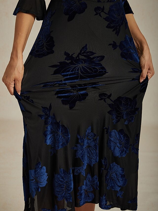 Dresses Type: Cocktail Dress, Velvet Dress, A Line Dress, Fabric: Velvet, Spandex, Gender: Women's, Design: Jacquard, Occasion: Wedding Guest, Cocktail Party, Date, Evening Party, Style: Birthday, Elegant, Cocktail, Print Type: non-printing, Fit Type: Regular Fit, Dress Length Type: Midi Dress, Neckline: V Neck, Sleeve Length: Half Sleeve, Elasticity: High Elasticity, Look After Me: Hand wash, Pattern: Floral, Season: Winter, Fall, Spring,