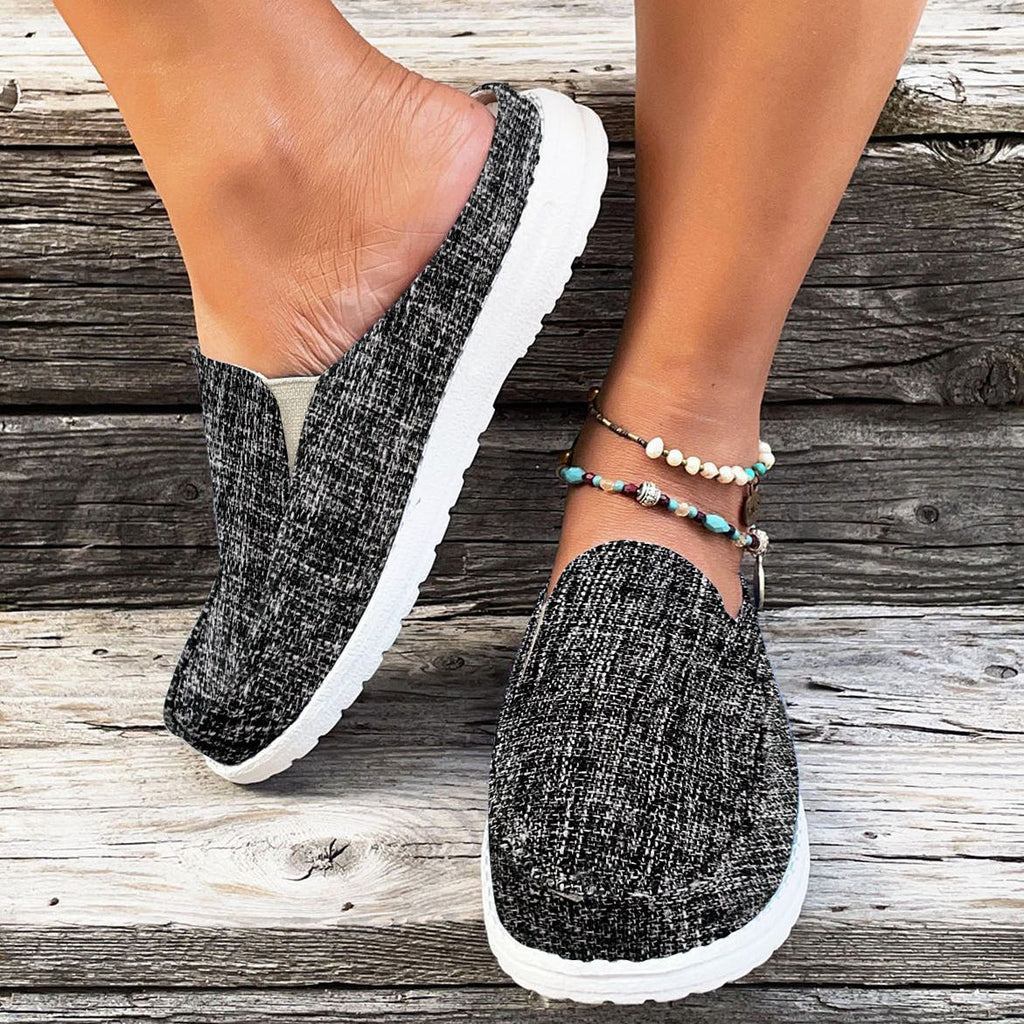 The Women's Flat Canvas Mules, Closed Toe Slip On Non Slip Round Toe Loafers, Casual Outdoor Slippers SE1039 is the yin, to your yang. You've found what you're looking for.