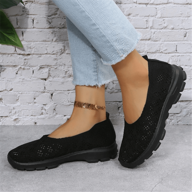 Product Title :Women's Hollow Out Knit Sneakers, Comfy Round Toe Slip On Low Top Walking Sneakers, Casual Sports Shoes