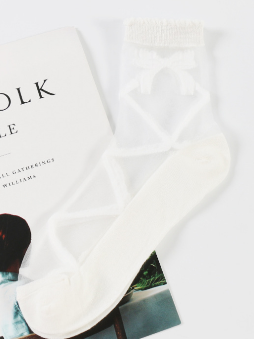 5 Colors Bow & Strap Pattern Semi-Sheer Socks