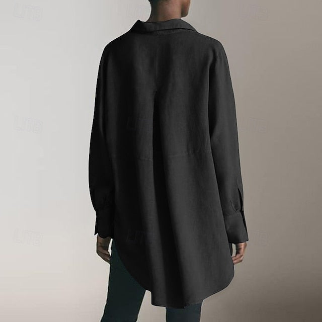 Fabric: Cotton Linen, Gender: Women's, Tops Type: 100% Cotton, Button Up, Shirt, Design: Buttons, Occasion: Work, Going out, Daily, Holiday, Style: Daily, Casual, Basic, Stylish, Fit Type: Regular Fit, Neckline: Shirt Collar, Sleeve Length: Long Sleeve, Top Length: Regular Tops, Pattern: Plain, Season: Fall, Spring, Fit EU Size: S:36;M:38;L:40;XL:42;2XL:44-46;3XL:48;4XL:50;5XL:52, Fit UK Size: S:8;M:10;L:12;XL:14;2XL:16-18;3XL:20;4XL:22;5XL:24, Fit US Size: S:4;M:6;L:8;XL:10;2XL:12-14;3XL:16;4XL:18;5XL:20,