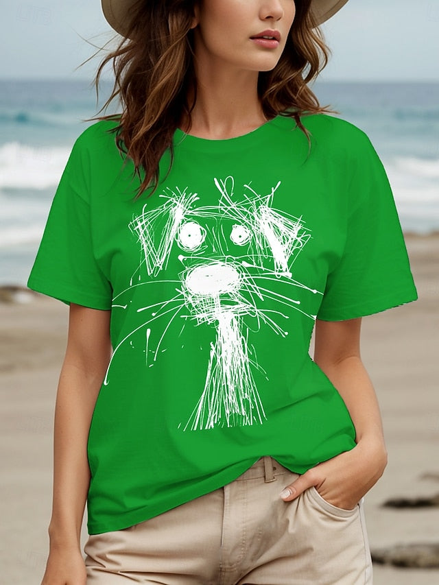 Fabric: Polyester, Tops Type: T Shirt, Gender: Women's, Design: Print, Occasion: Weekend, Daily, Style: Trendy, Casual, Classic, Stylish, Vintage, Category: T-Shirt, Fit Type: Form Fit, Neckline: Crew Neck, Round Neck, Sleeve Length: Short Sleeve, Elasticity: Micro-elastic, Look After Me: Washable, Hand wash, Machine wash, Top Length: Regular Tops, Pattern: Graphic, Animal, Dog, Season: Spring, Summer,