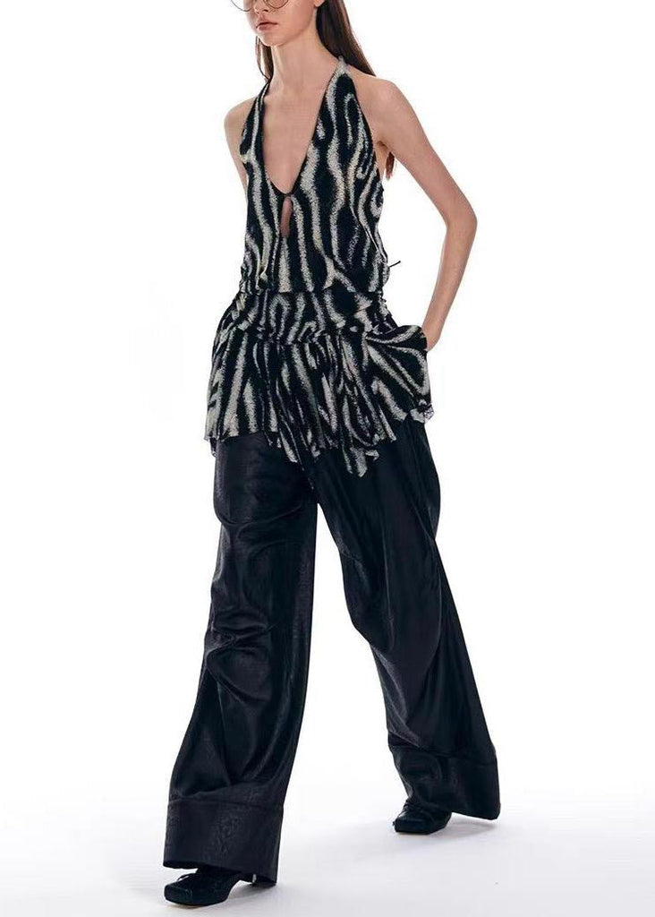 Backless Beach Unique Black Print Halter Summer Vest FashionChic