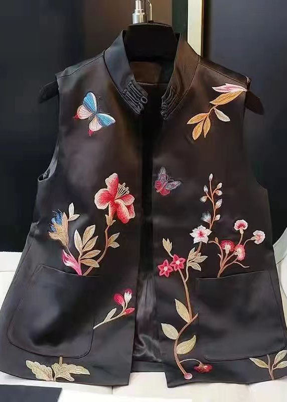 Chinese Style Black Butterfly Embroideried Patchwork Silk Vest Sleeveless