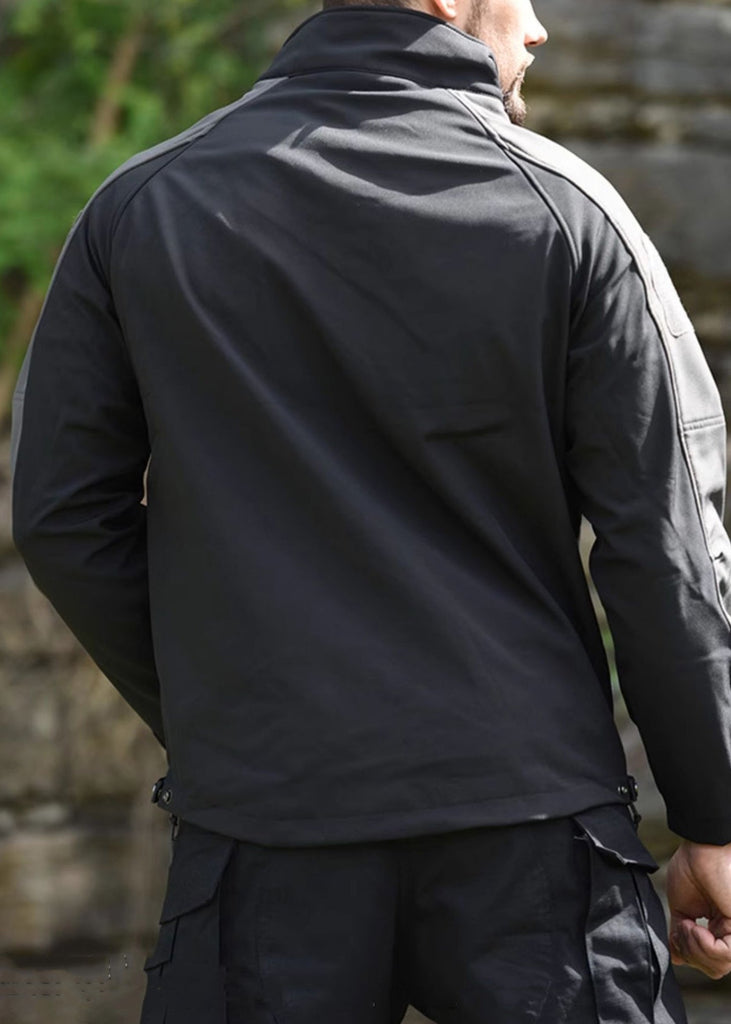 Art Khaki Zip Up Pockets Patchwork Warm Fleece Men Coat Spring