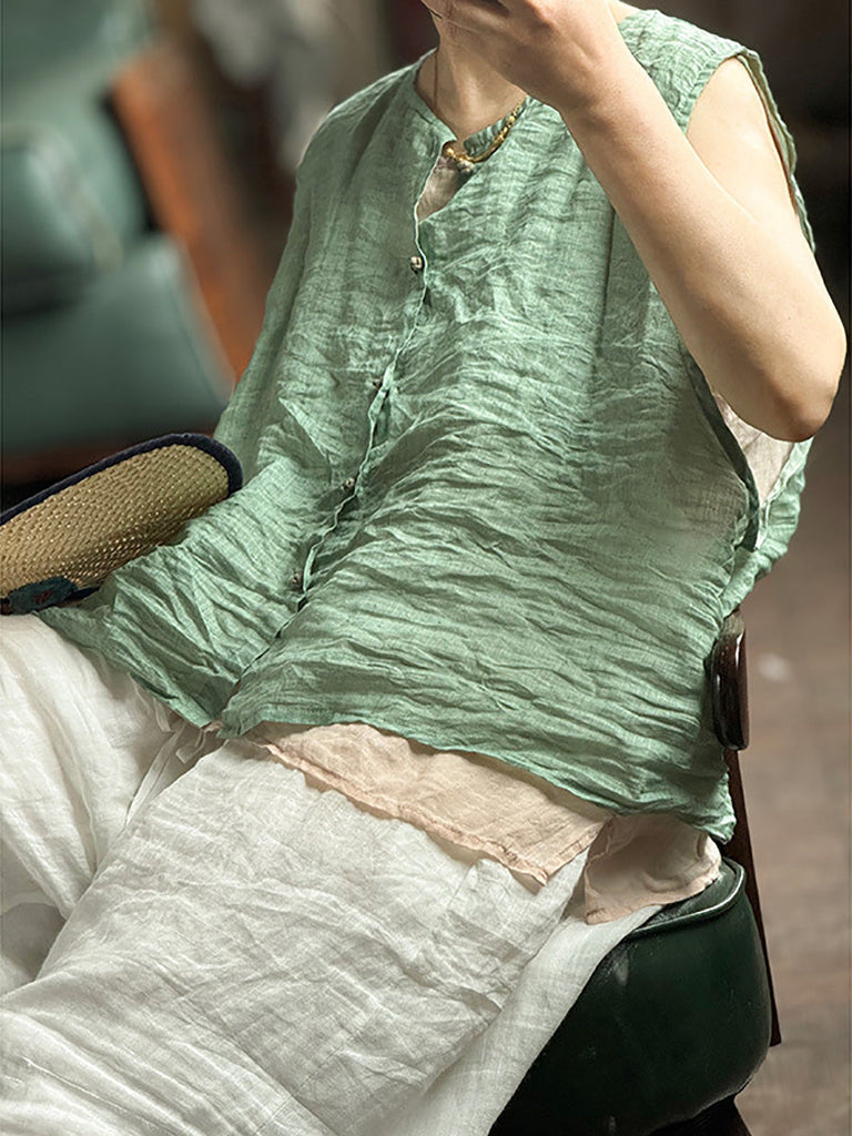 Vest Women Summer Loose Vintage Solid Ramie