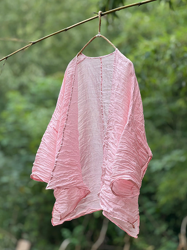 Vintage Ramie Solid Coat Thin Summer Women Shirt