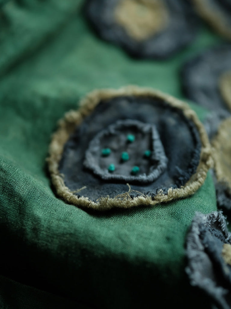 Women Vintage Autumn Patch Spliced Long Linen Coat AX1013