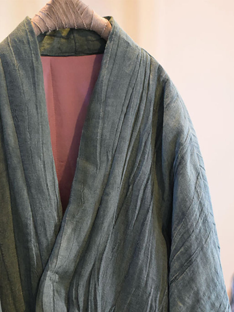 Women Winter Vintage Solid Pocket Linen Padded Coat QM011