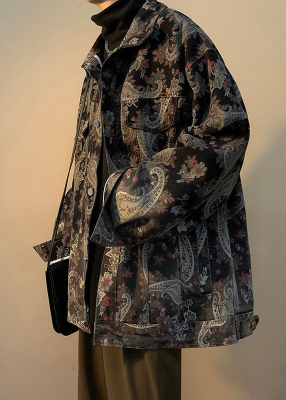 Unique Peter Pan Collar Button Print Denim Mens Coats Fall WA033