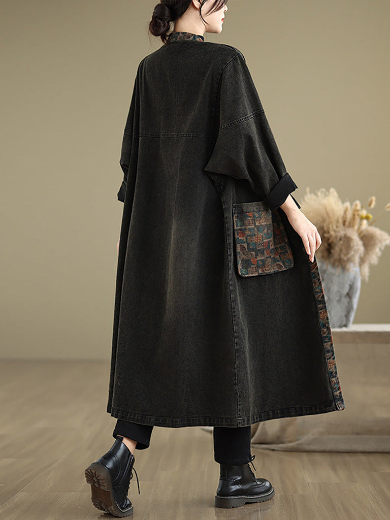 Add some color to your autumn wardrobe with this playful denim coat. Featuring a unique colorblock design with patch detailing, this coat will have you standing out in style. Stay warm and fashionable this season!