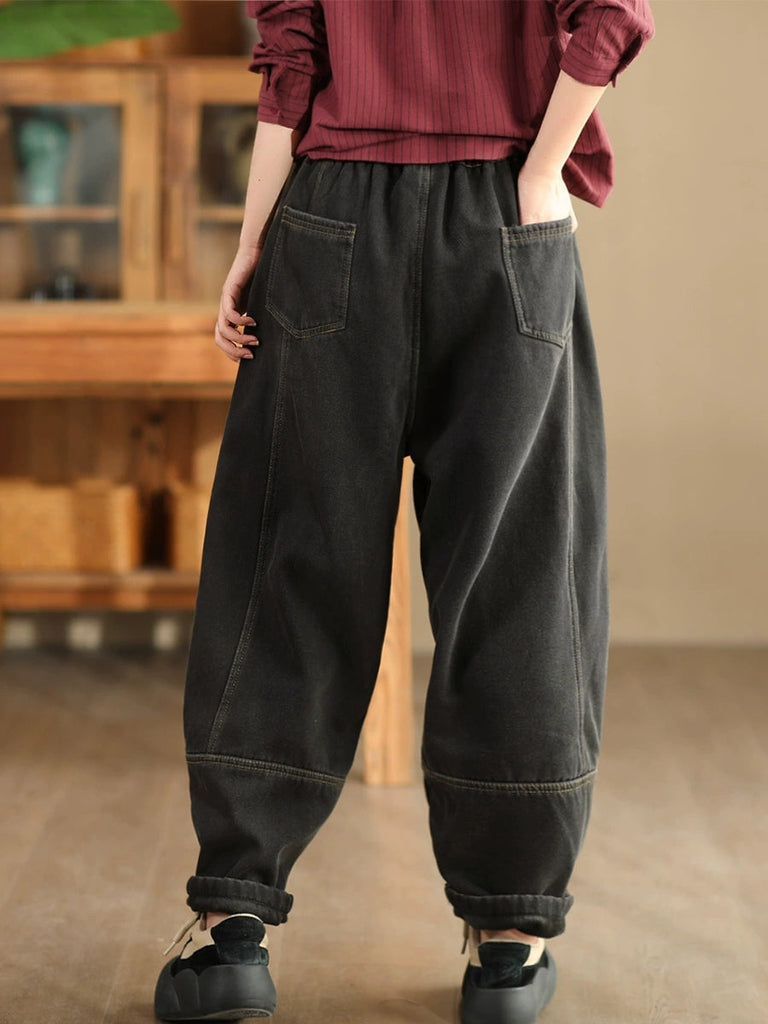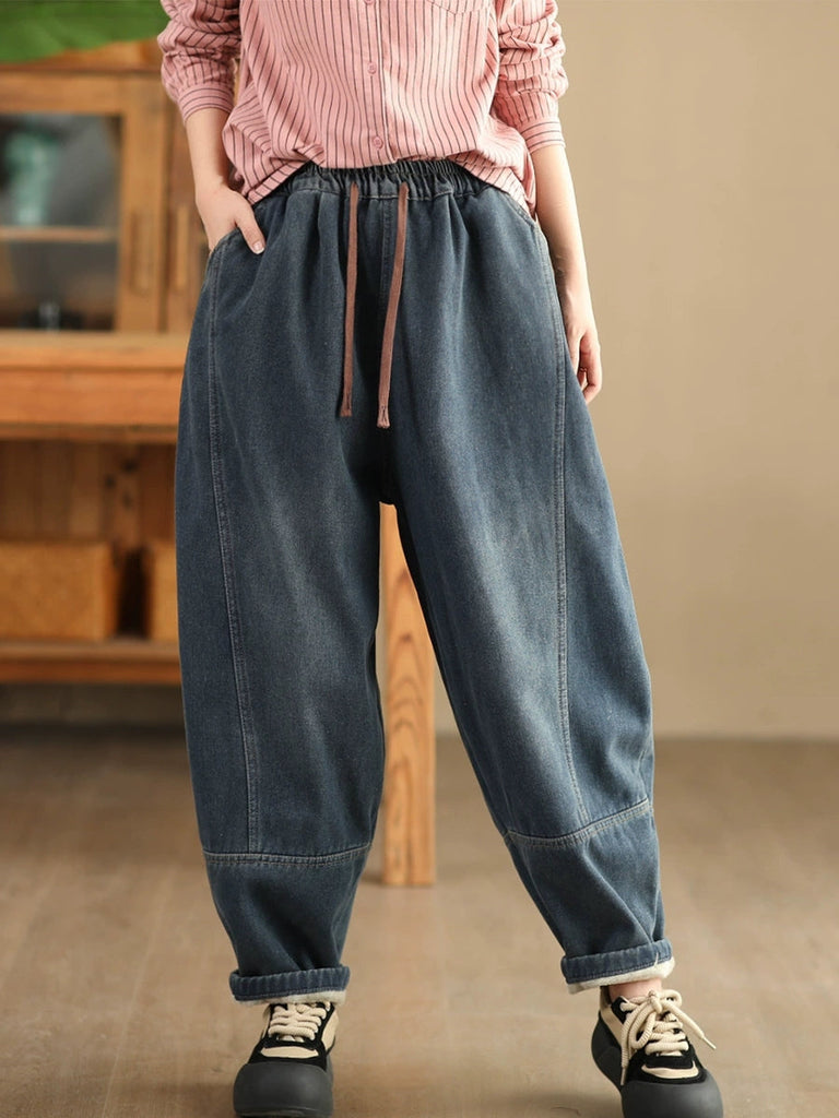 Women Winter Retro Denim Fleece-lined Harem Pants WG002
