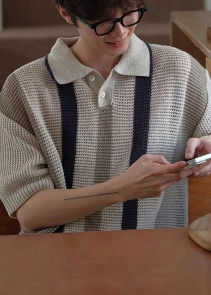 The Casual Apricot Striped Hollow Out Knit Mens Polo Shirt Designer Summer QH006 is the yin, to your yang. You've found what you're looking for.