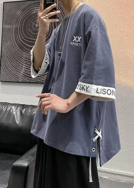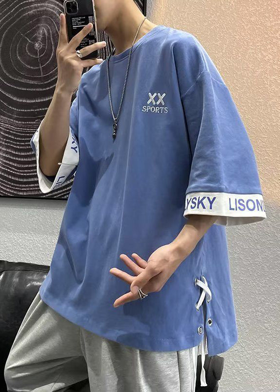 Plus Size White O Neck Lace Up Cotton Mens T Shirt Designer Summer WA015
